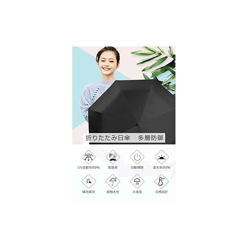 Parasol, Ultra Lightweight, UV Reduction, 99.99%, Full Light Blocking, Heat Blocking, One-Touch Automatic Opening/Closing, Folding Umbrella, Compact, Folding Parasol, UV Blocking, Windproof, Water