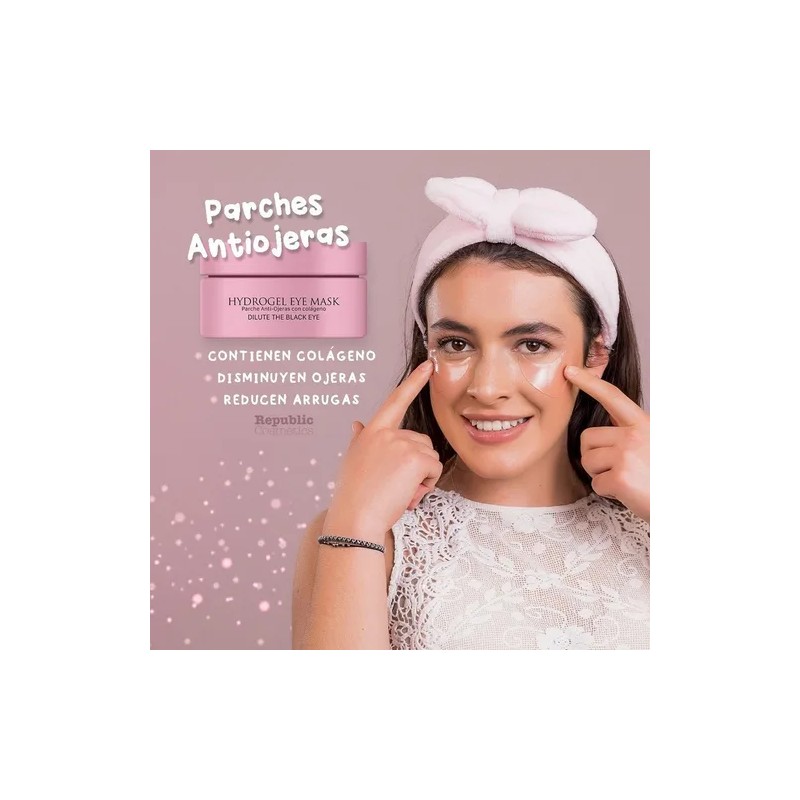 Parche Anti-Ojeras con colágeno, ayuda a reducir ojos cansados, hidrata la piel, con ingredientes que benefician la piel.