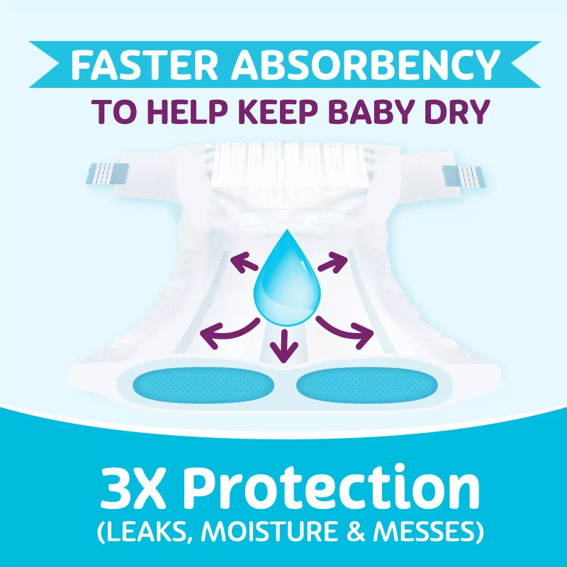 Parent's Choice Dry and Gentle Diapers help keep your baby comfortable and happy. The diapers' wetness indicators will change colors, letting you know when it's time to change your baby's diaper. Now with faster absorbency, these diapers help to keep your baby dry with 3X protection from leaks, moisture and messes. These diapers also have a snug and stretchy fit with wiggle-proof leak barriers. Each diaper is made without natural latex, lotions, and perfumes so you can trust they will be gentle on your baby's skin. Bring home our Parent's Choice Dry and Gentle Diapers today.