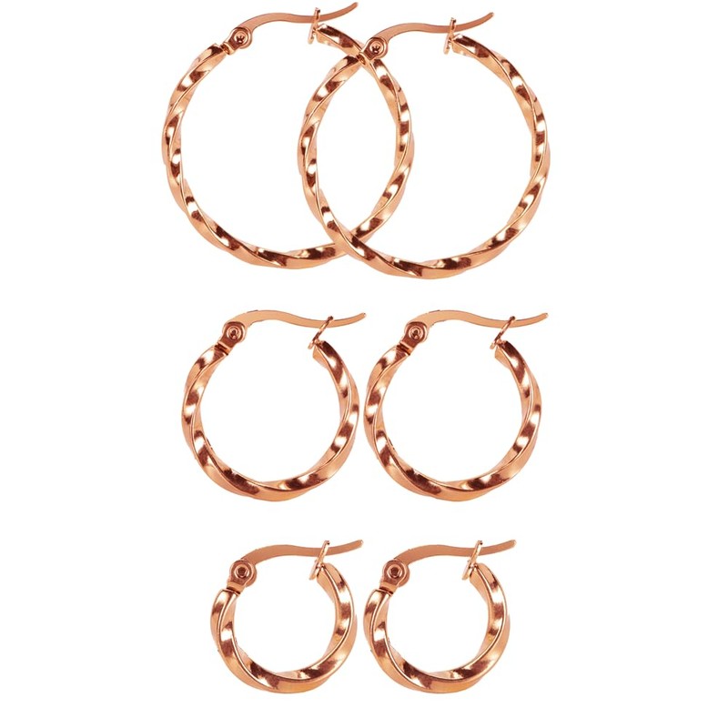 Pargleev 3 Pairs Twisted Stainless Steel Hoop Earrings Set for Girls Women,Rose Gold