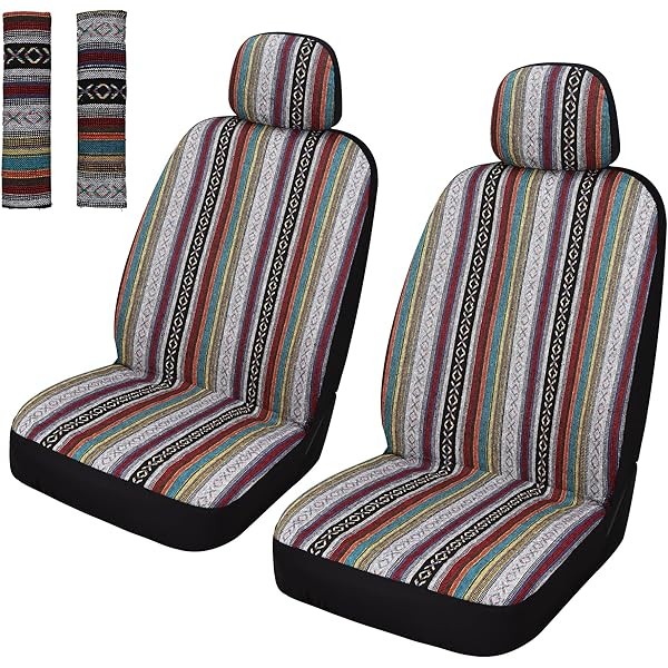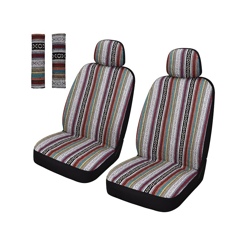 Pariitadin Baja Saddle Blanket Car Seat Covers Front Set with Seat Belt Pads, Washable Breathable Striped Woven Cloth Seat Covers for Cars, Universal Fit Most Cars, Airbag Compatible, Red