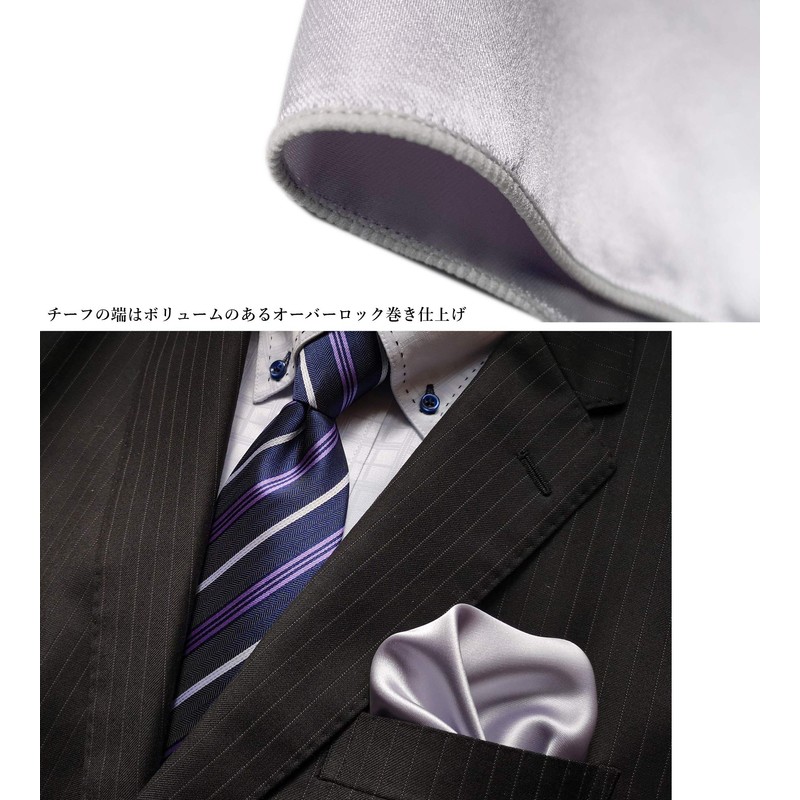 Paris 16K Men's Pocket Square, Reversible, Plain, Large, Sateen Weave, 12.6 x 12.6 inches (32 x 32 cm), Wedding, Silver
