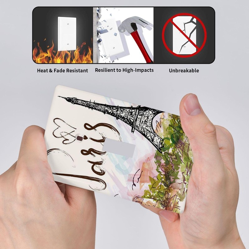 Paris Eiffel Tower Light Switch Cover Decorative Single Toggle Wall Plate 1-Gang Art Electrical Faceplate for Home Bedroom Decor 4.50" x 2.76"