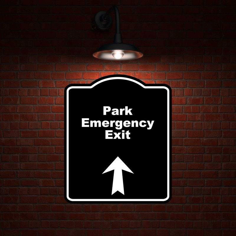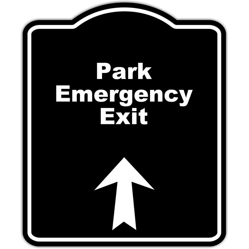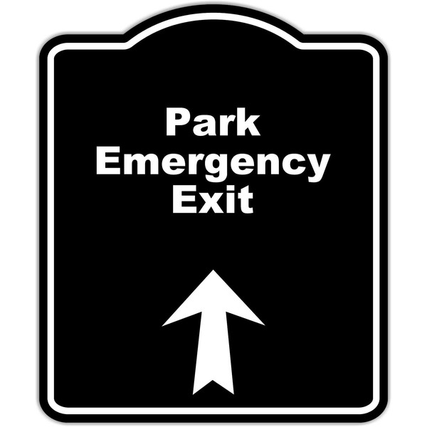 Park Emergency Exit Black Sign Arrow Up Aluminum Composite Sign 20 x 24 inches