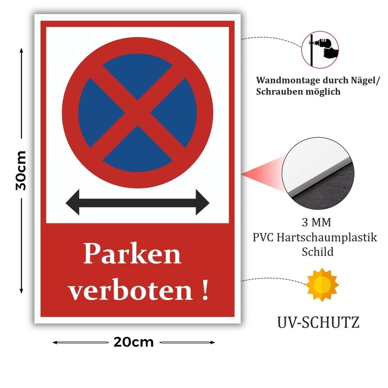 Parken Verboten Sign, Made of Sturdy PVC Hard Foam Board, 3 mm Thick, with UV Protection and Weather-Resistant, Private Parking Sign, Clear Sign for Parking Prohibition, Pack of 2 (30 x 20 cm)