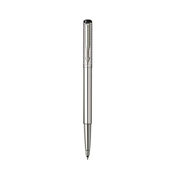 Parker Vector Premium Shiny Stainless Steel Chiselled Blue Rollerball Pen