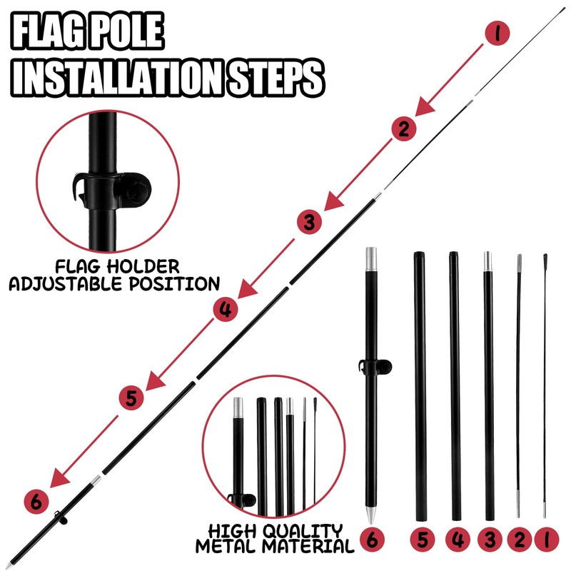 - Parking Feather Flag Kit: you will receive 1 set of parking feather flag, including 1 feather flag, 5 metal poles, 1 ground stake, 1 storage bag, which can easily display the advertisement of parking lot