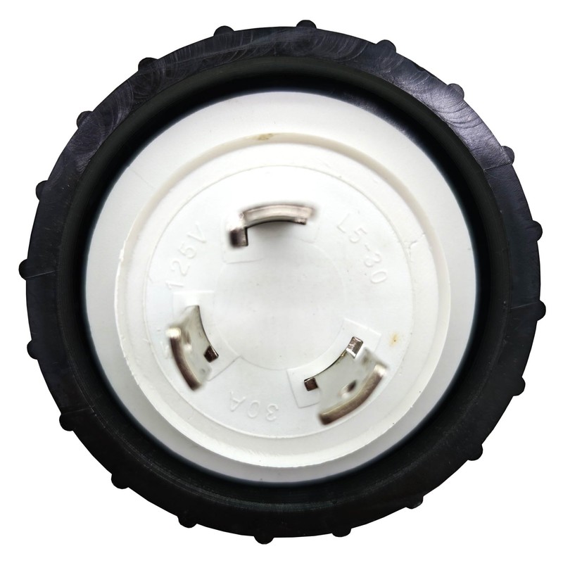- RV Shore power 30amp 3-prong locking L5-30R male plug with locking ring.