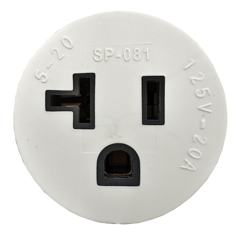- NEMA 5-20 T-Blade 3-prong receptacle ( household regular 15 AMP NEMA 5-15 socket).