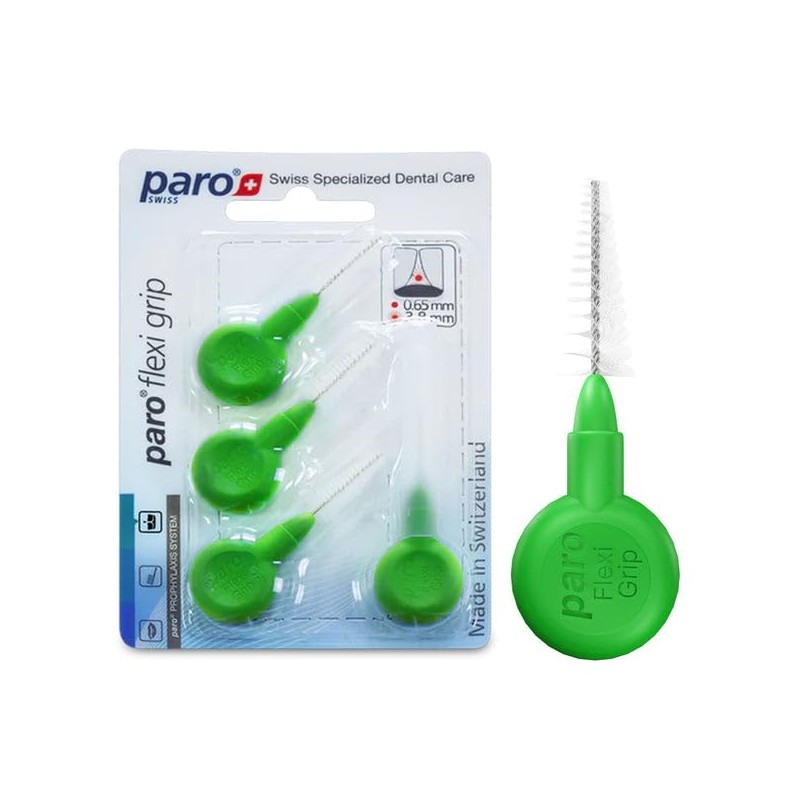 - The Paro Flexi Grip-Interdental Brushes are ready to use and feature a soft, round rubber grip for an excellent hold with just two fingers. This design simplifies the insertion of the brushes into all interdental spaces, ensuring thorough cleaning.