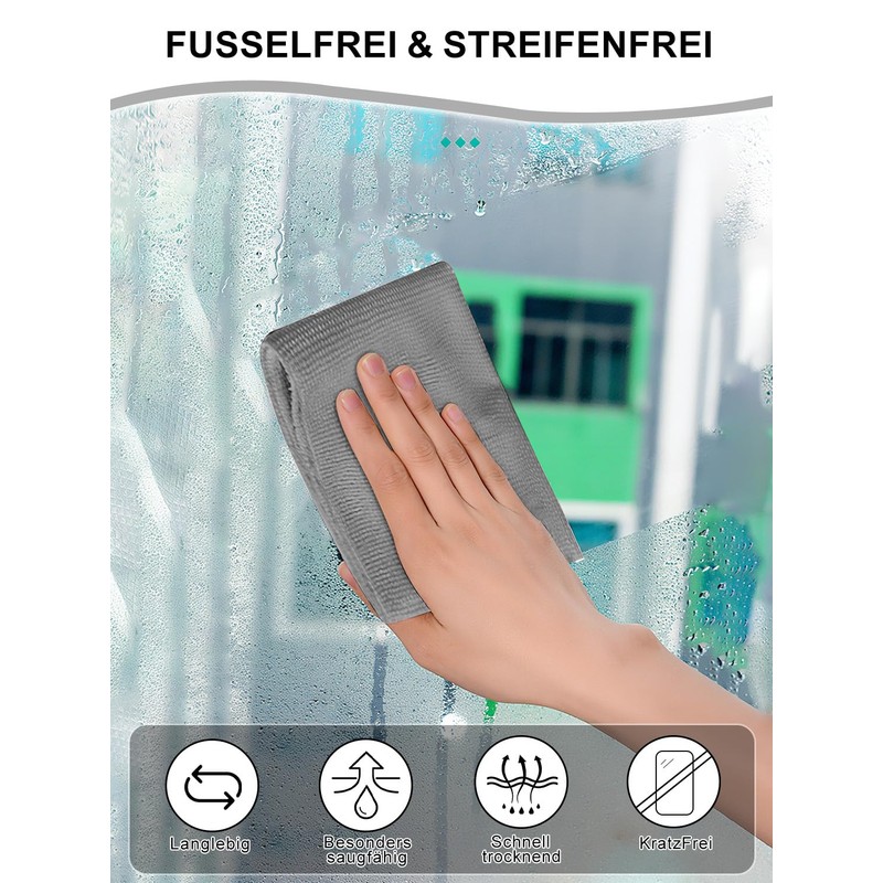 PARPAT Microfibre Cleaning Cloths, 50 Pieces per Roll, Tear-Off Cleaning Cloths, Reusable Lint-Free Cloths for Car, Kitchen and Home, 30 x 30 cm (Dark Grey)