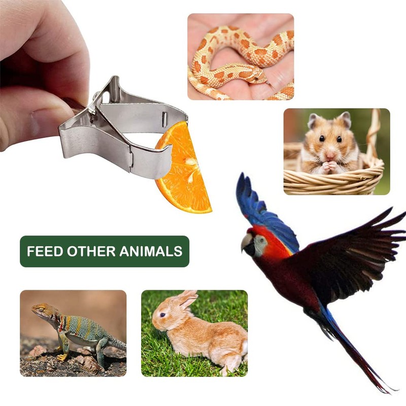 - Prevent food from falling down: the opening of the parrot feeding clip has a strong biting force, which can clamp the food and not easy to fall off.