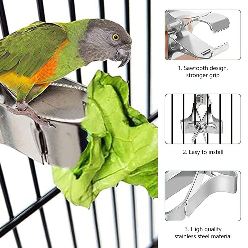 - Instructions for use: this bird feeder clip is attached to the edge of the bird cage and can provide your parrot with fruit, vegetables and other food. You no longer have to hold the food with your hands, which prevents parrots from pecking in your hands. This is a very practical and practical tool for bird lovers.