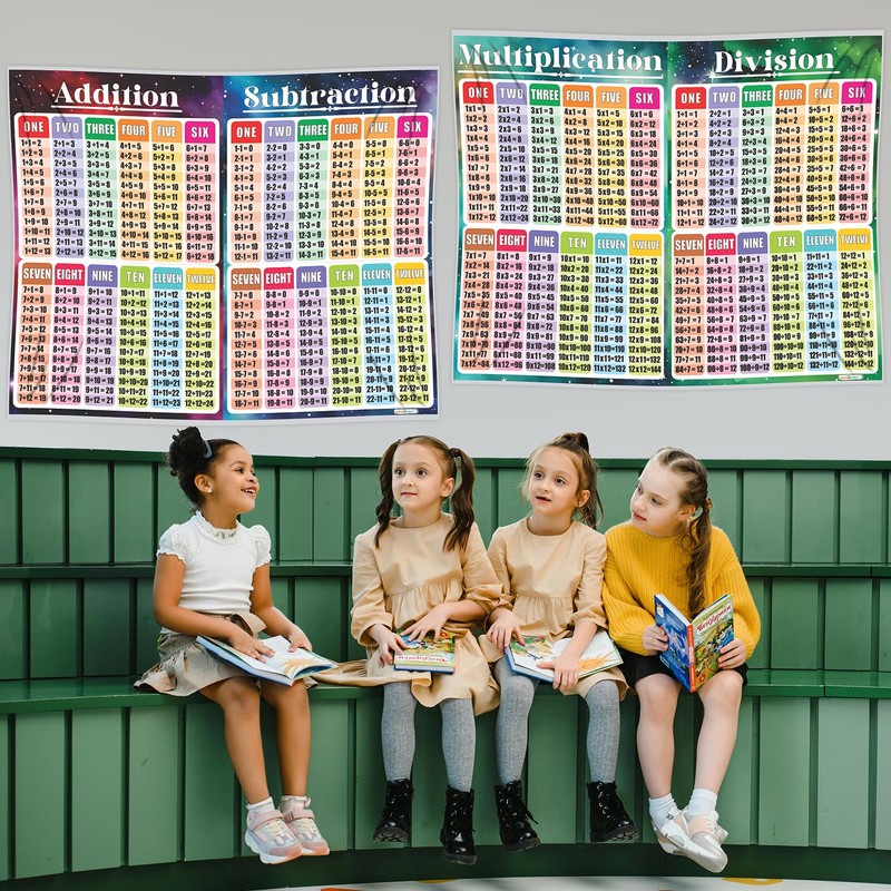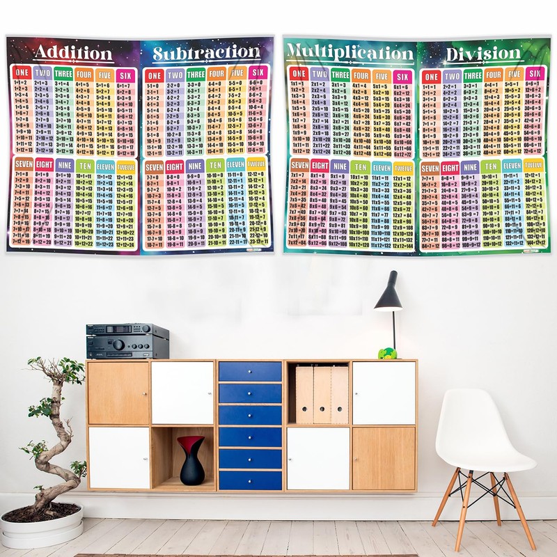 • UNIQUE WALL ART DECOR - No matter where you use them, our Math Addition Subtraction Multiplication Division Classroom Posters help make your child’s Learning Experience Easier. Using these Homeschool, Playroom & Elementary Middle School Posters make your Dream Classroom Amazing.