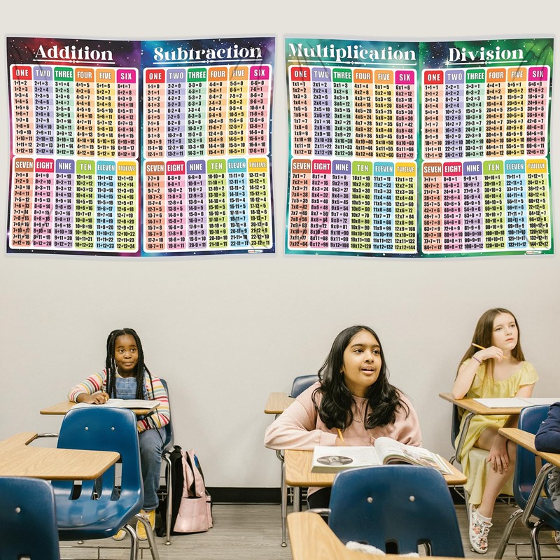 PARTH iMPEX Large Educational Math Posters - 56" x 46" Addition Subtraction Multiplication Division Educational Table Chart Posters for Kids, Elementary Middle School Classroom, Washable Fabric