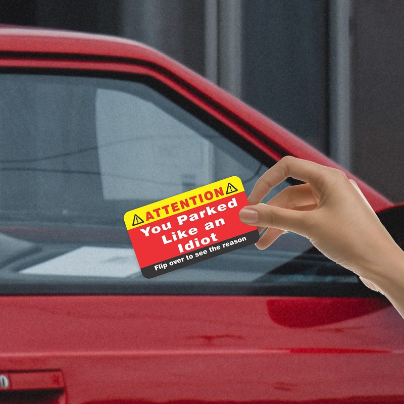 - IMPOSSIBLE TO IGNORE - You can also write your own comments in writable area at back side to tell someone why they park like an idiot. Leave on careless driver’s under the windshield wiper, through the driver’s door window, will send a strong message to them. EXCELLENT NOVELTY GAG GIFT