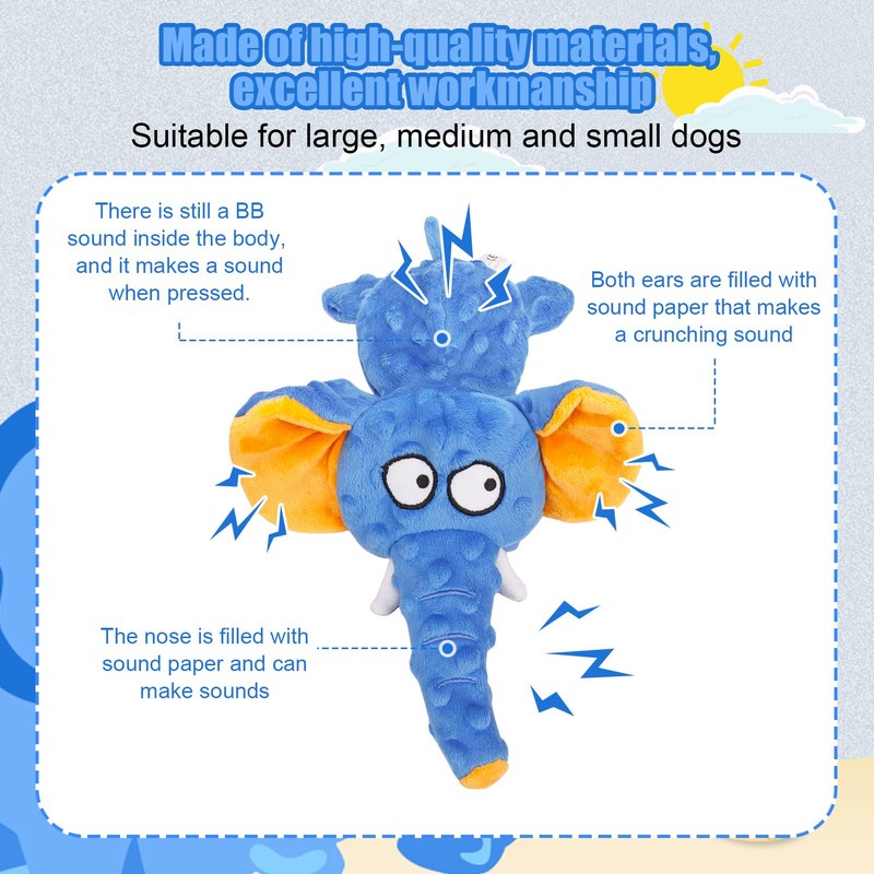 ATTRACTIVE ELEPHANT DESIGN - Designed in a cute elephant style, the toy will attract your dog's attention and provide endless fun.