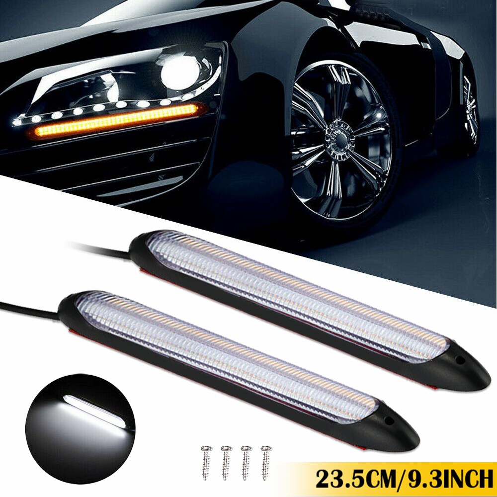 2X 23.5CM LED Strip-Lights DRL Daytime Running Sequential Turn Signal Headlights