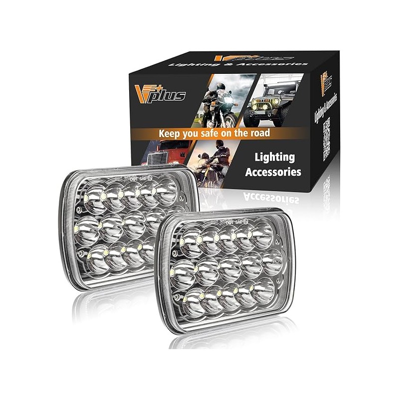 Partsam 2PCS Rectangle H6054 LED Headlights 5x7 7x6 Headlamp Hi/Low Sealed Beam H4 9003 Plug 6054 H5054 Compatible with S10 Blazer Express Van/Wrangler YJ XJ Cherokee Truck Van
