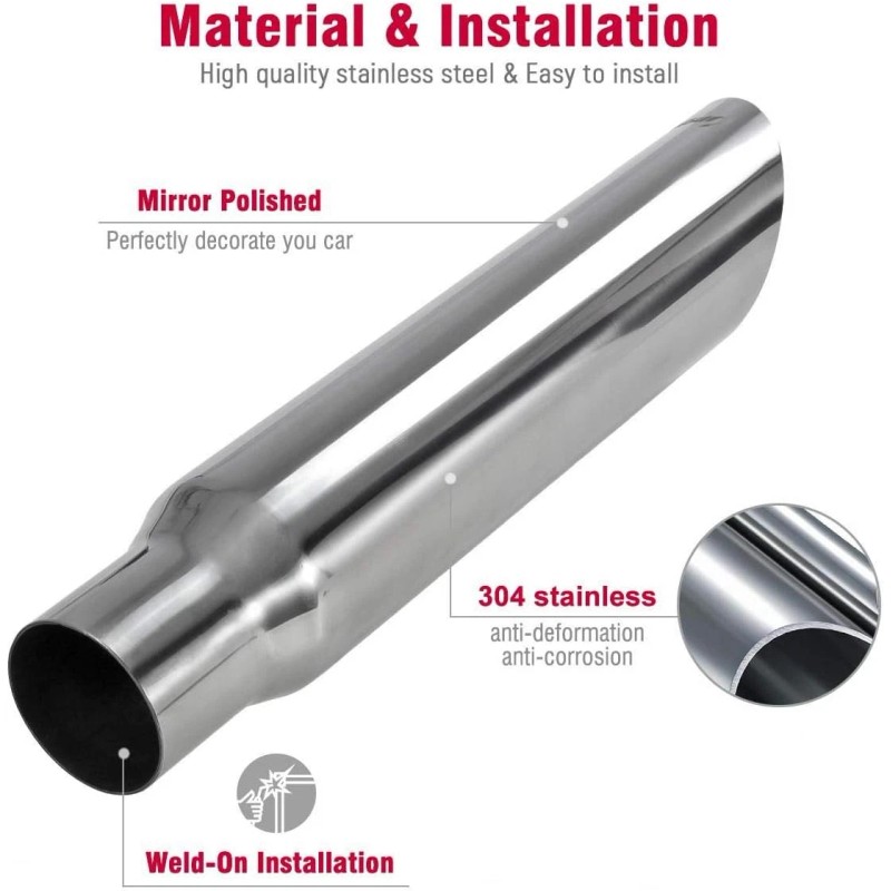 Upower Exhaust Tip 2.25" Inlet 3" Outlet 16" Long Weld On Tailpipe 2 1/4" to 3" for Car Trucks Universal 304 Polished Stainless Steel Angle Cut
