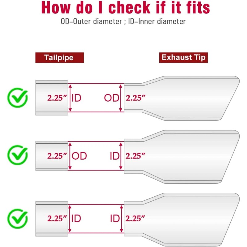 - 【Wide Application】Universal fits 2.25"(2 1/4")Inlet diameter car trucks pickup exhaust tail pipe tip.