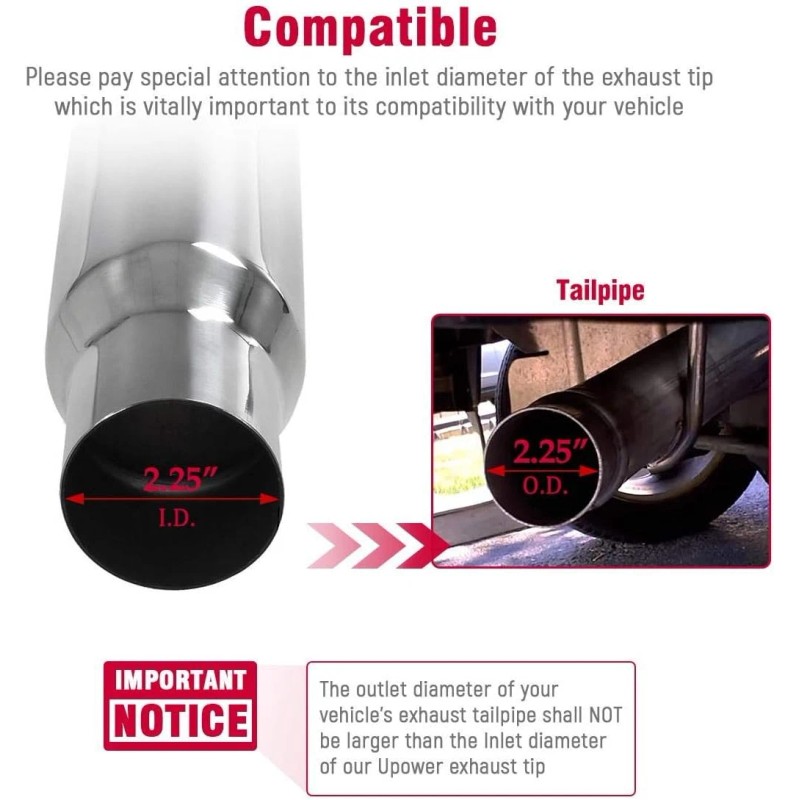 - 【Upower Exhaust Tip】No instruction is included. Professional installation is highly recommended.