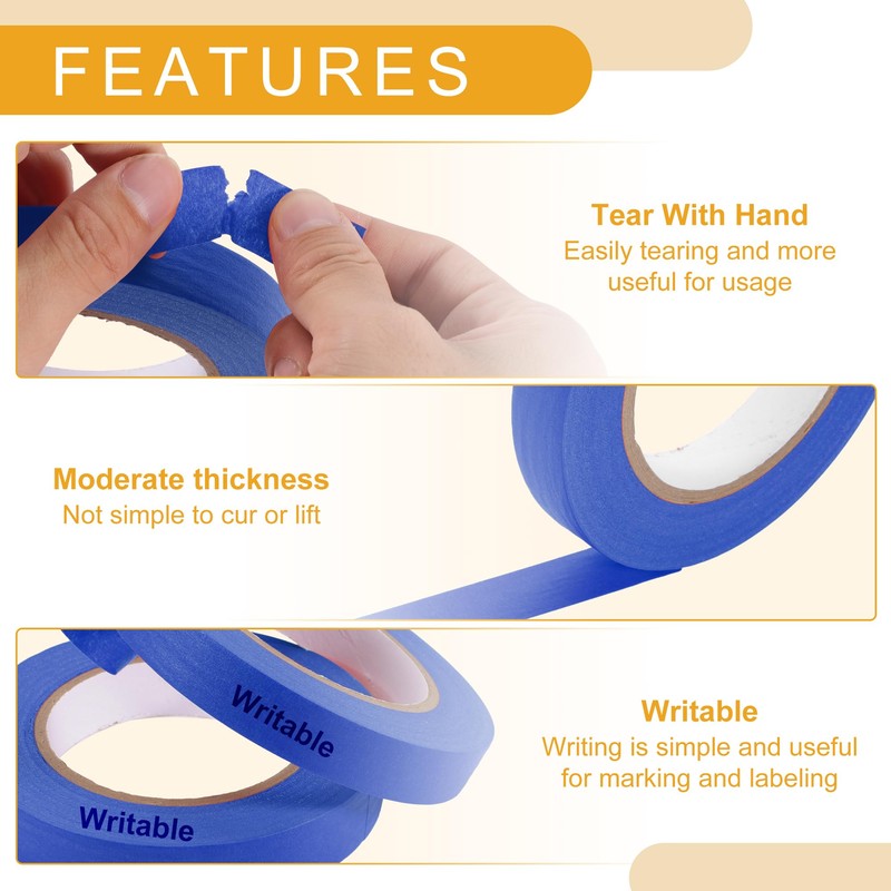 - [PRODUCT FUNCTION] The masking tape uses a good glue ratio to achieve the correct viscosity, which can stay indoors for about 14 days, suitable for kinds of surfaces, such as plastic, glass, paper, whiteboard, painted walls, and cars.
