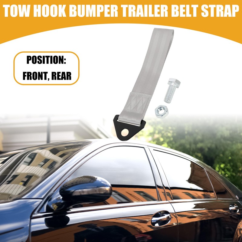 Partuto 1pc Tow Hook Bumper Trailer Belt Strap Universal - Nylon Grey