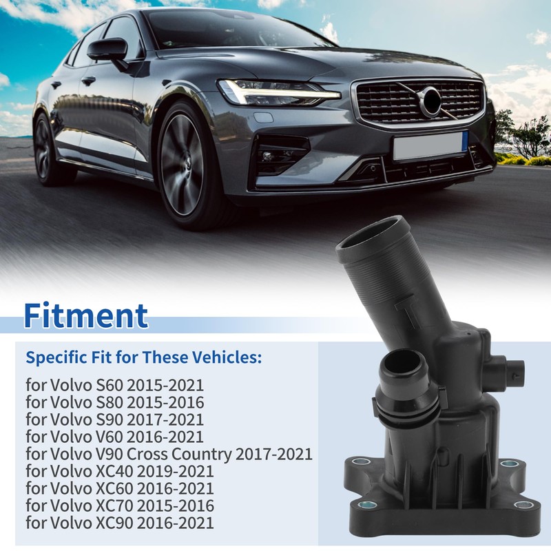 • [Specific Fit] This thermostat housing assembly is customed for Volvo S60 2015-2021, for Volvo S80 2015-2016, for Volvo S90 2017-2021, for Volvo V60 2016-2021, for Volvo V90 Cross Country 2017-2021, for Volvo XC40 2019-2021, for Volvo XC60 2016-2021, for Volvo XC70 2015-2016, for Volvo XC90 2016-2021.