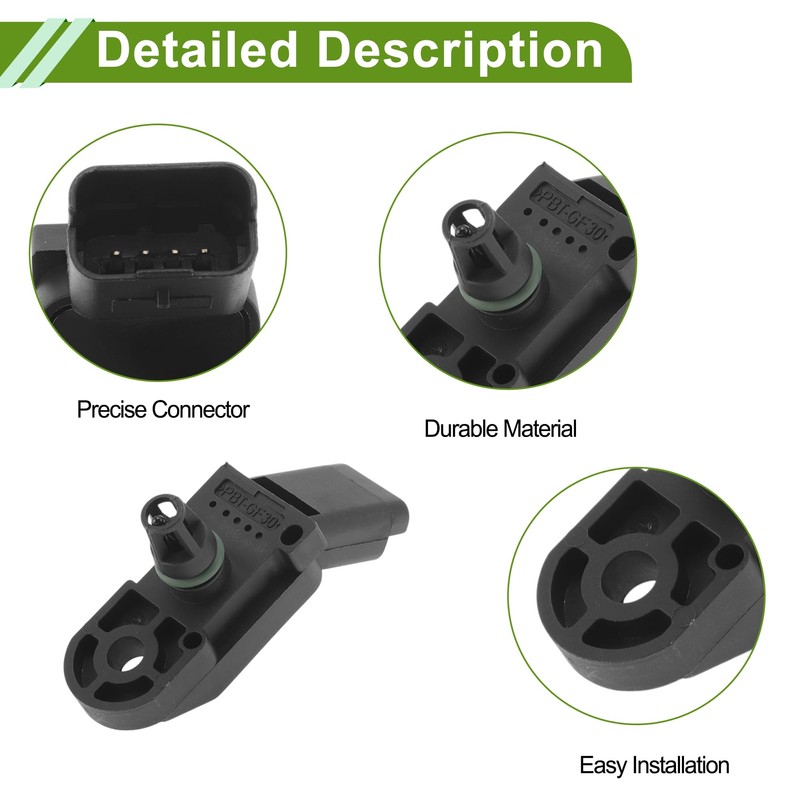- Product Characteristics: This MAP sensor is used to calculate air density and determine the engine's air mass flow rate and provides instantaneous manifold pressure information to the engine's electronic control unit.