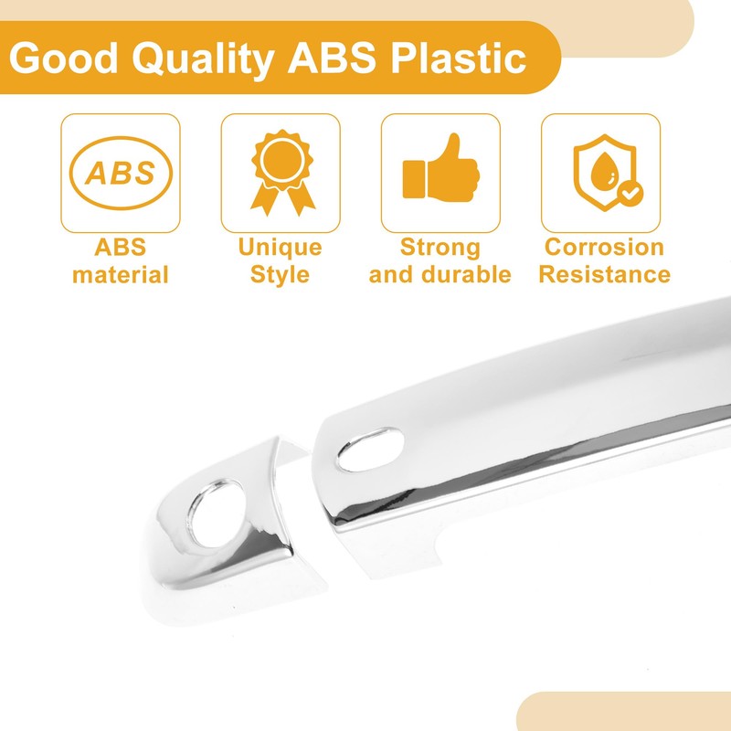 - [PRODUCT FUNCTION] Material: ABS,Color: Silver Tone.Door Handle Cover Trim Provides a unique and fashion decor style to enhance the visual appearance of your car. It can cover existing scratches and prevent your door handles from fingernails key scratches and etc. Dress up your handles and makes your car out of ordinary.