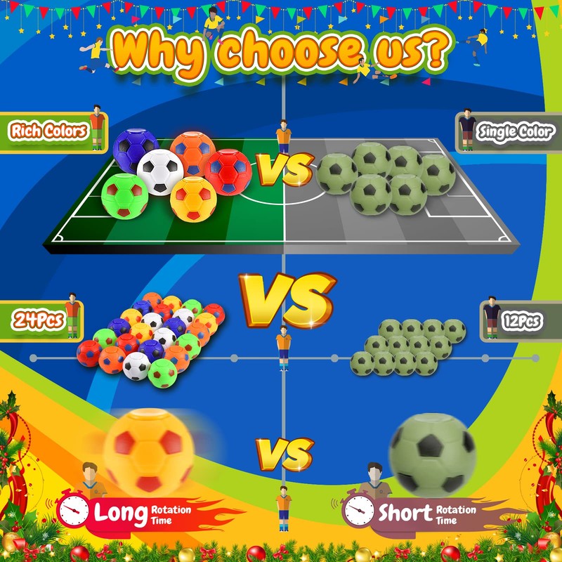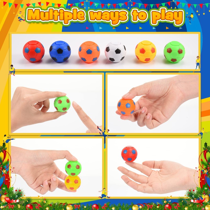 - đă24Pcs Stocking FillersăThis is a novelty fidget toy set, combination football and fidget spinner. With a diameter of 1.38ââ, kids can easily grab it. 24-pack fidget spinner toy, many different colors in random combination.