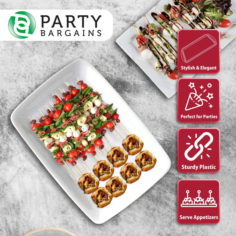 - ✅ PLASTIC FOOD TRAYS: Elegant, sturdy, and just the right size for serving your guests food and drinks, charcuterie, fruit slices, chips, pastries, and assorted desserts