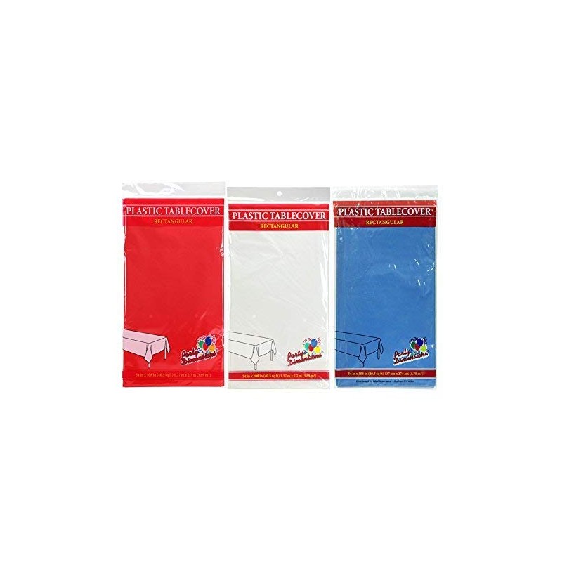 Party Dimensions 54" x 108" Rectangular Tablecovers / Tablecloths - Bundle of 6 - Red, White & Blue
