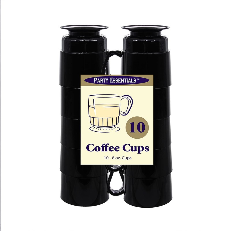 - Party essentials deluxe/elegance quality hard plastic 8-ounce coffee cups feature classic styling; a footed base and full-size handles
