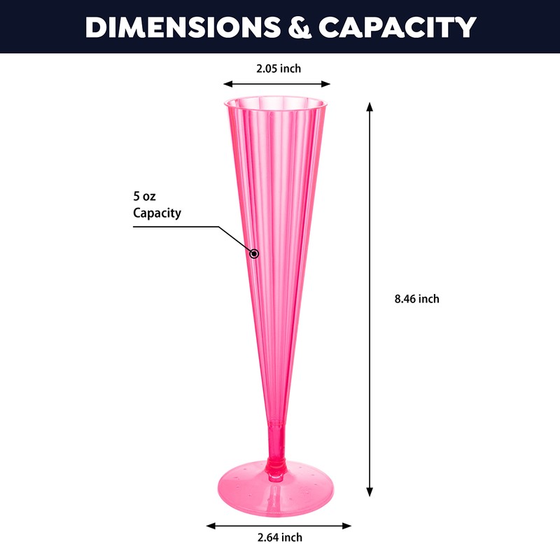 - Northwest Enterprises 2-piece quality hard plastic 5-ounce neon pink champagne flutes