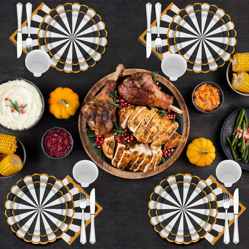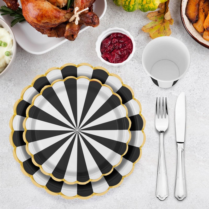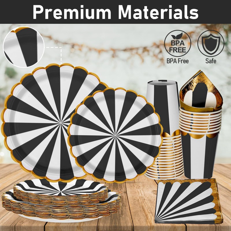 - 96 pieces black and white party tableware set: including 9 inch plates 24.7 inch plates 24.24 - paper towels, 24 x cups