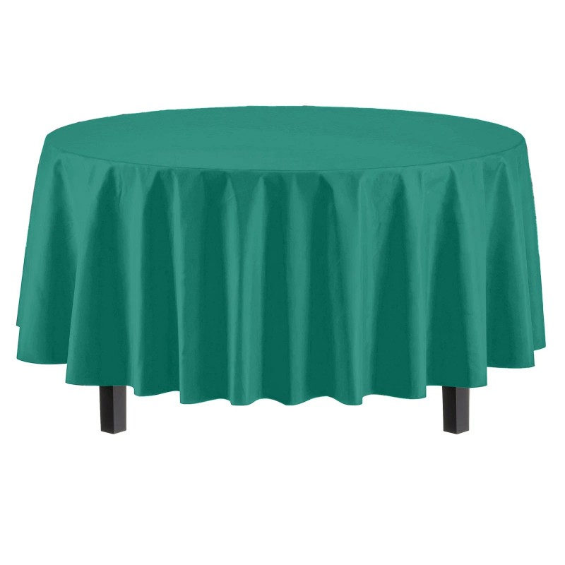 • SIZE: This 84in. Round Teal Plastic tablecloth will cover any table up to 8 feet.