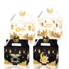 Partystadl 24 pcs Mubarak gift boxes for Ramadan and Eid. Small, recyclable, printed cardboard boxes. Good for candies, cookies and snacks. With handles. For parties. 4 patterns. Discount available.
