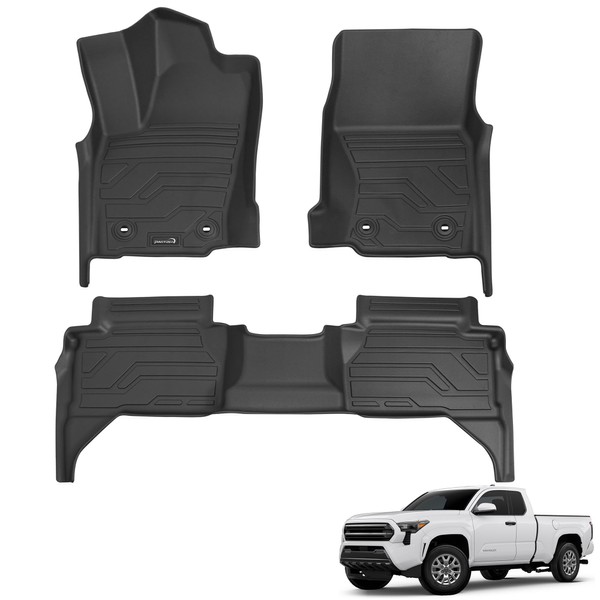 PARTZER Floor Mats Fit 2024 2025 Toyota Tacoma Double Cab (Not fit Hybrid) TPE All Weather Floor Liners for Tacoma TRD/SR/SR5/limited Custom Fit Front&2nd Row Car Mats (Only Fit Automatic)