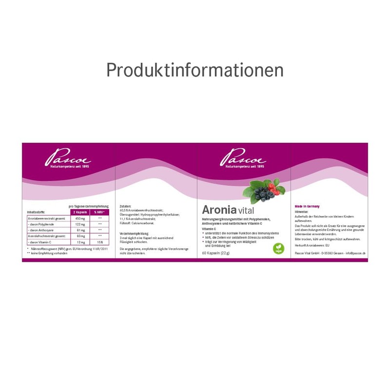Pascoe Aronia Vital: Dietary Supplement - Natural Vitamin C from Acerola - Vegan - with Polyphenols - 60 Capsules
