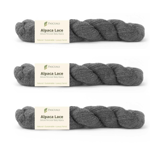 PASCUALI Alpaca Lace, 100% Alpaca Wool, Alpaca Wool for Knitting and Crocheting, Set: 3 Strands - 150 g, Colour: Marble 09