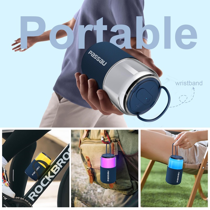 Passau Portable Bluetooth Speaker Wireless with Lights, 15W Loud Stereo Clear Sound, All Day Playtime, BT 5.4, TWS Paring, for Home Outdoor Party Beach (Blue)