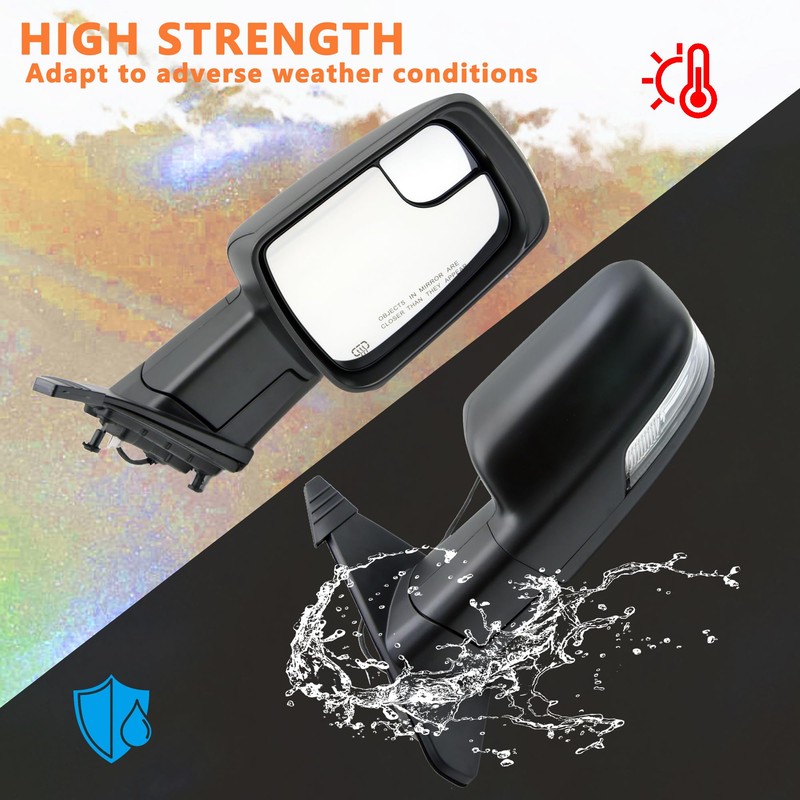 - Feature: Power-heated glass/ Puddle light/ Blind spot mirror/ Power folding/ Turn Signal Lights/ Temperature Sensor/ Black textured housing