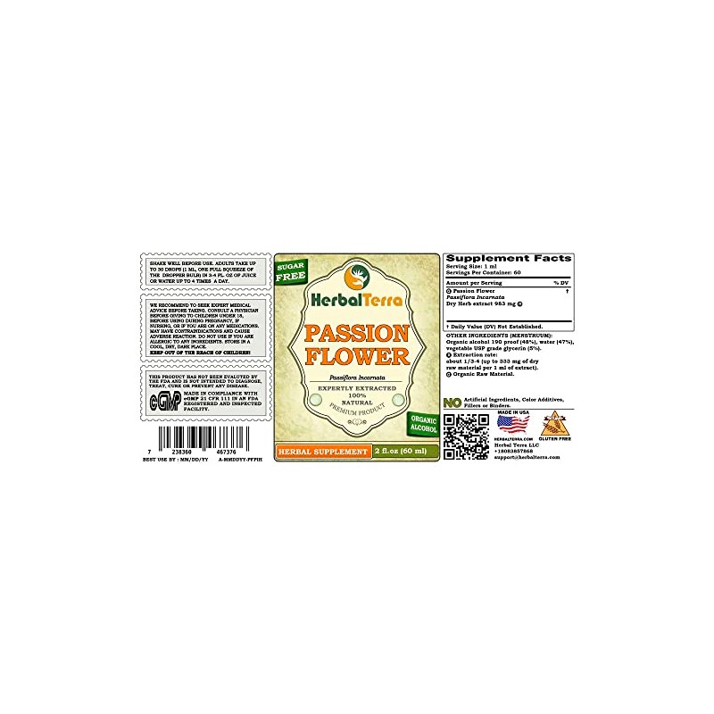 Passion Flower (Passiflora Incarnata) Tincture, Organic Dried Herb Liquid Ext...
