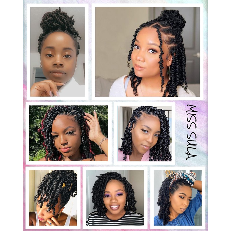 - Fasion Style:Miss Sula Short Passion Twist Crochet Hair Is Made Of Spring Kinky Twist Bohemian Curls With High Quality Flame-retardant Hot Water Setting Low Temperature Synthetic Fiber.