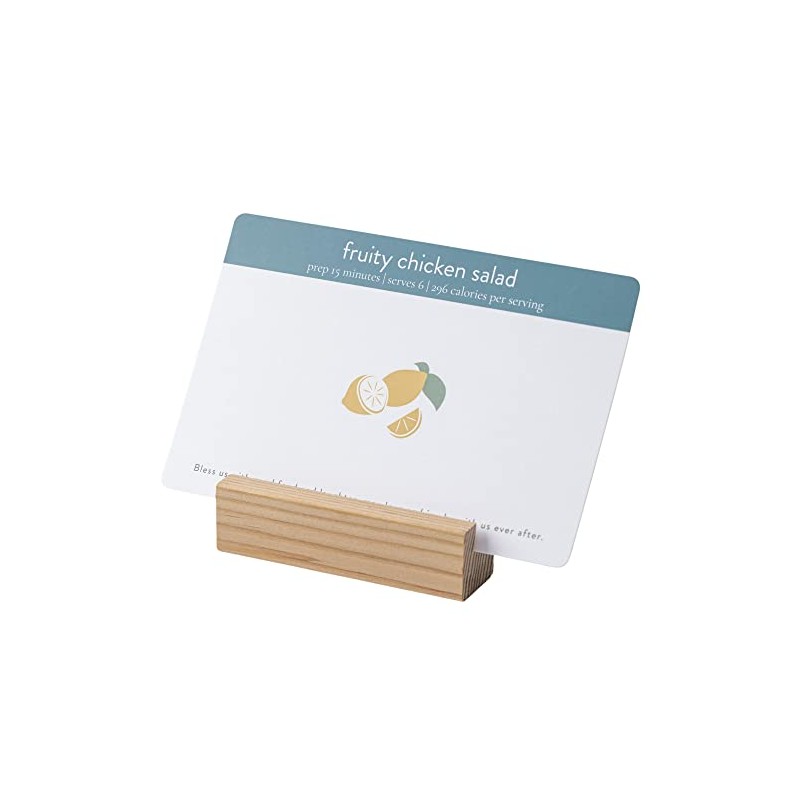 - SIMPLE YET PRACTICAL - Enjoy hands-free cooking and meal prep with this simple wood block recipe card holder. The slit is designed at an angle to hold recipe cards for optimal viewing.