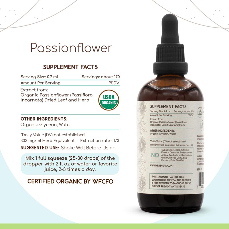 Passionflower B120 USDA Organic Tincture | Alcohol-Free Extract, High-Potency Herbal Drops | Certified Organic Passionflower (Passiflora incarnata) Dried Leaf and Herb (4 oz)