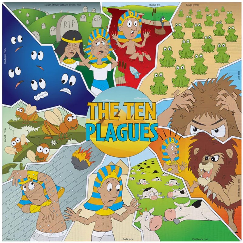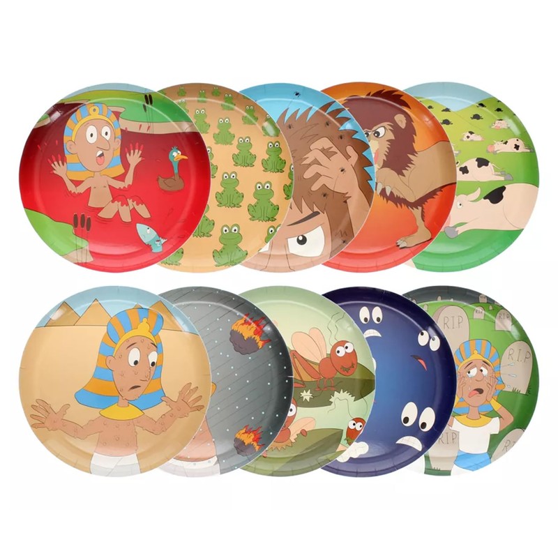 • 2 sets of 10 plates and cups each showing another of the ten plagues