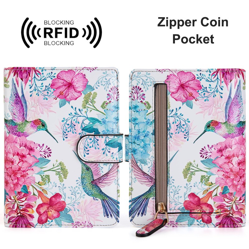 Passport Holder for Travel Essentials, RFID Blocking Passport Wallet Cover with Magnetic Closure, Passport Book Holders for Women and Men (Flowers and Hummingbirds)